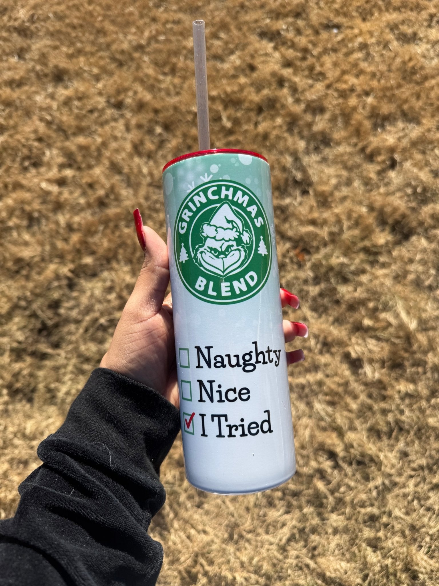 Get into the holiday spirit with our Merry Grinchmas Tumbler Cup! This 20oz cup features a custom design and comes with a sliding lid and reusable straw. Perfect for keeping your drinks cold (or hot!) while spreading some holiday cheer. (Don't be a grinch, get this cup!)