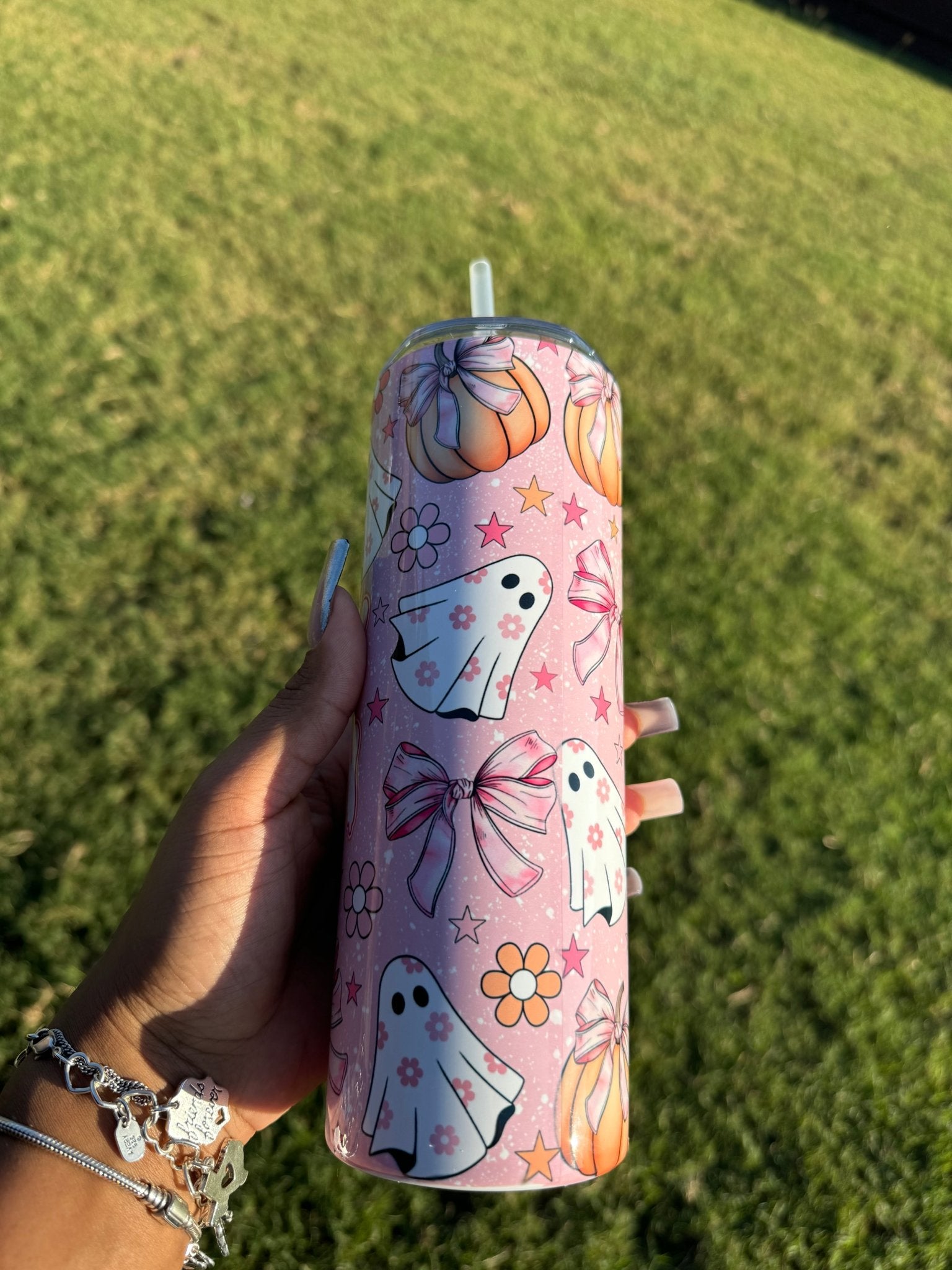 Stay hydrated in style with our Pink Spooky Season 20oz Tumbler Cup! This cup features a cute pink design with playful ghosts and festive bows, making it the perfect accessory for your spooky season celebrations. Keep your drink cold for hours and enjoy the festivities with this fun and functional tumbler.