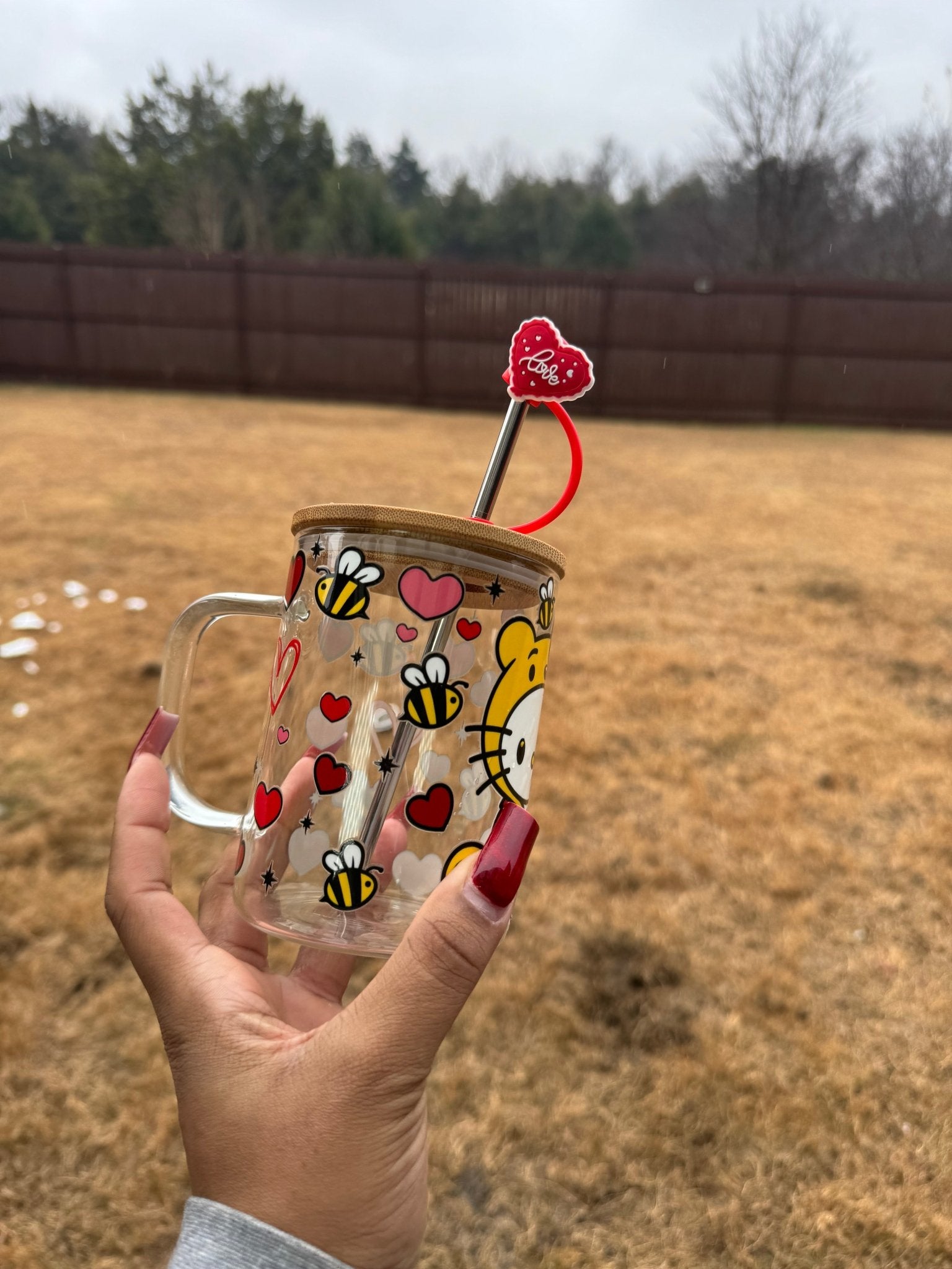 - Straw and lid included