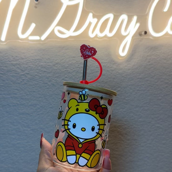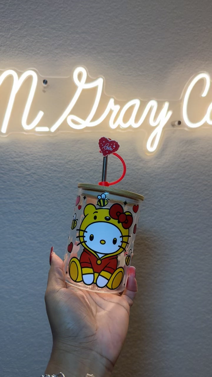 "Add a touch of cute to your morning routine with Pooh Loves Kitty 16oz Libby Glass Can Cup. Featuring Hello Kitty dressed as Winnie the Pooh, this custom cup is the perfect gift for your Valentine. Enjoy your favorite drinks in style (and cuteness) with this adorable cup!"