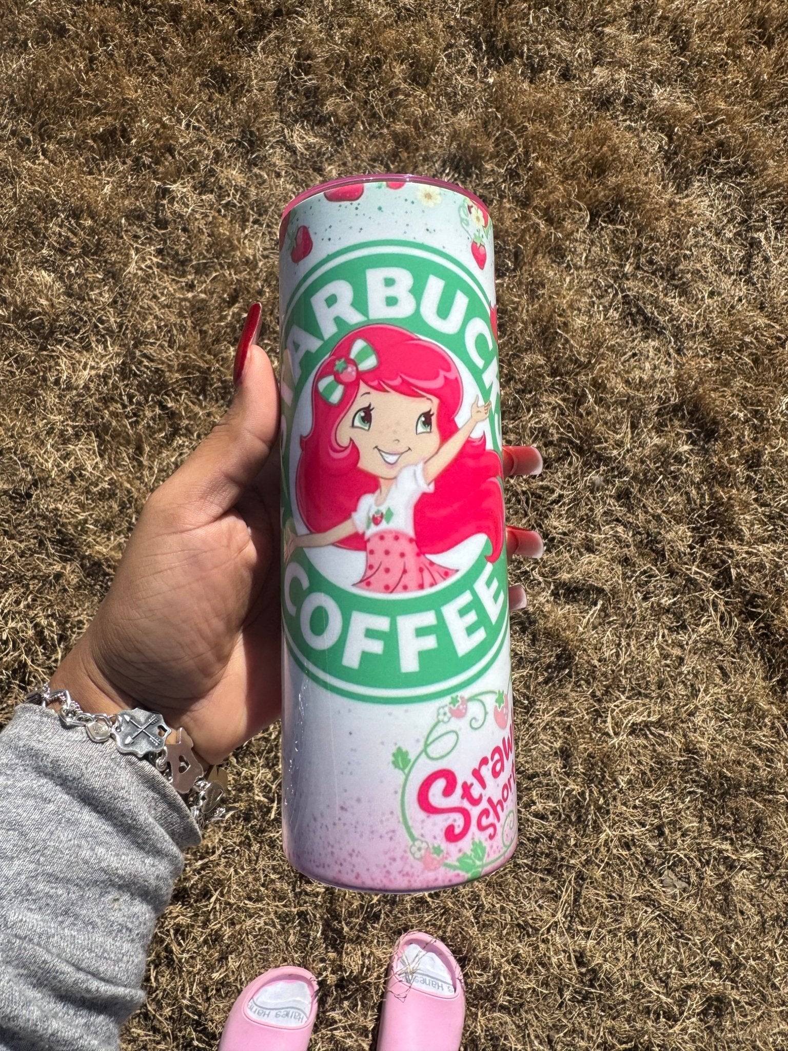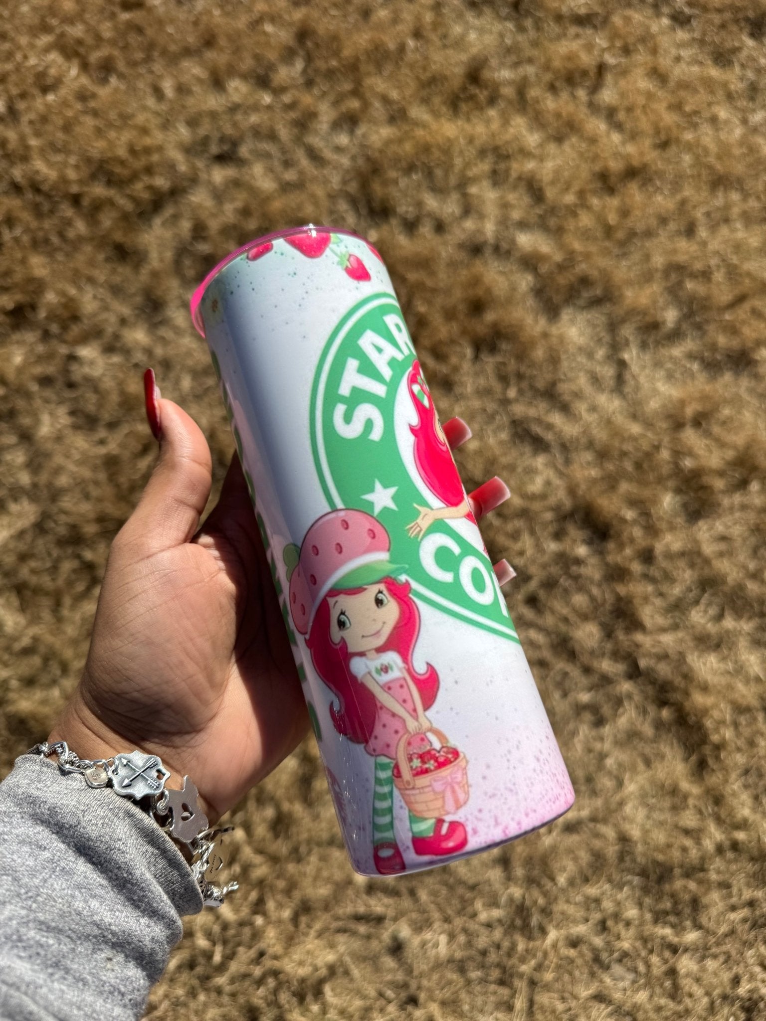 "Indulge in the fruitiest dreams with our Strawberry Dreams tumbler cup! This 20oz cup features a scrumptious strawberry short cake theme, perfect for holding all your favorite drinks. Satisfy your thirst with a touch of sweetness (and puns) - this cup is a must-have for any quirky and playful soul!"